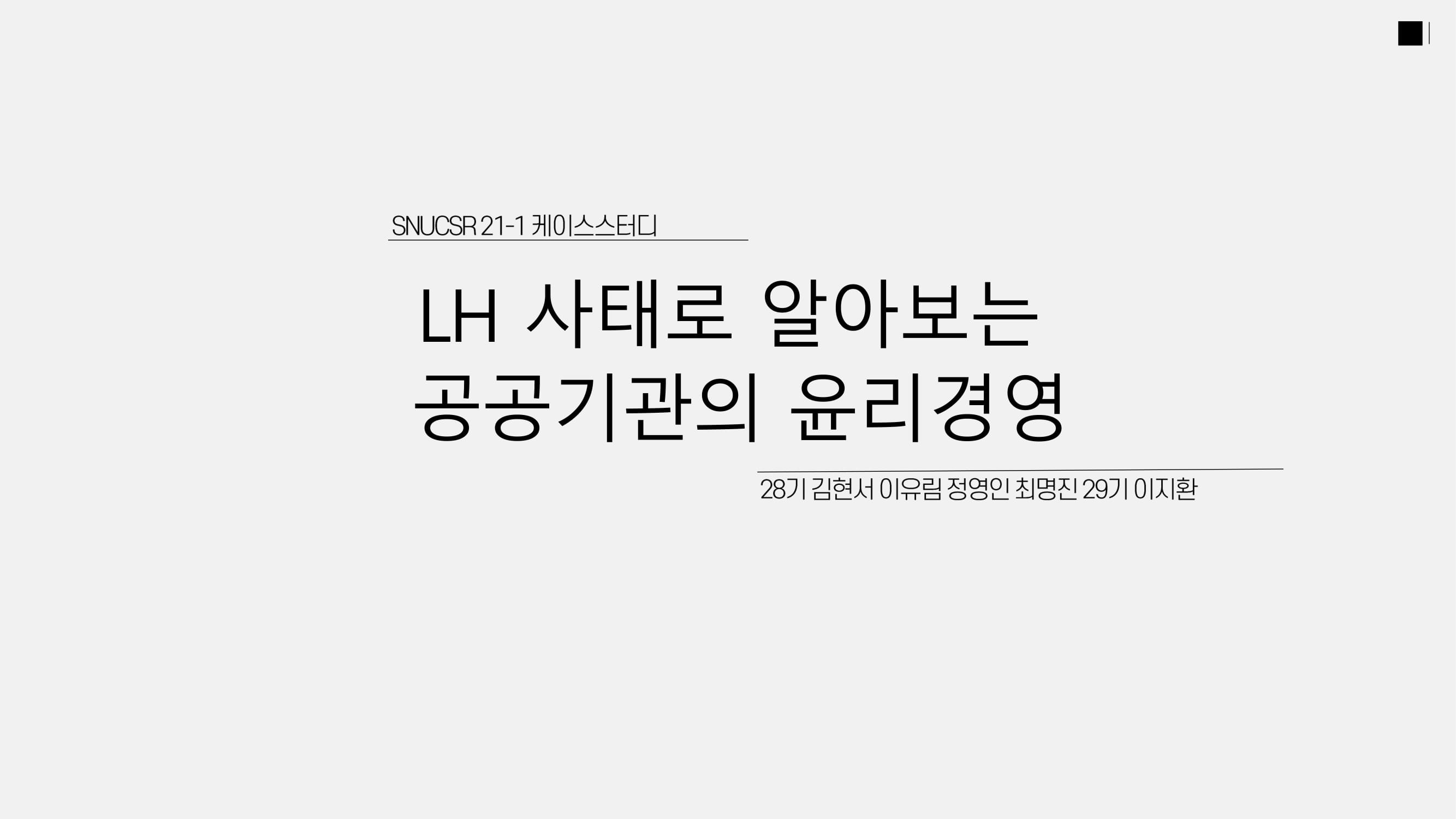 LH 사태의 개요는 다음과 같다. 지난 3월, 한국토지주택공사(LH) 직원들이 정부의 3기 신도시로 선정된 광명, 시흥 신도시 사업지역의 토지를 투기성으로 매입했다는 의혹이 제기되었고, 이후 정부합동조사단이 출범하여 사건을 조사하였다. 현재 LH 투기 의혹 수사 중이며, 3기 신도시 정보가 업무상 비밀에 해당하고 업무 관련성이 존재한다는 것이 입증 시 부패방지법 제86조에 따라 LH 투기 혐의 직원에게 7년 이하의 징역 또는 7천만 원 이하의 벌금 및 투기 이익 몰수 및 추징이 가능하다. 이번 사태로 인하여 공직자의 부당한 사적 이익 추구를 비롯한 공직자 윤리 문제가 부각되었으며, 전문가들은 LH 사태가 대중적 땅 투기, 정부의 도덕적 해이, 공공 확대에 선행해야 할 신뢰성 부재, 수도권 집중 현상 등 한국 사회의 문제들을 압축해서 드러냈다고 평가했다. 따라서 케이스 스터디를 통해 LH 사태의 근본적인 문제점과 공공기관의 윤리경영에 대하여 알아볼 것이다.